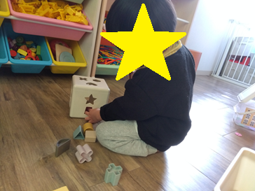 こちらの活動では、星や丸といった様々な形をしたパズルを、同じ形の穴が開いている場所にいれる活動となっております!