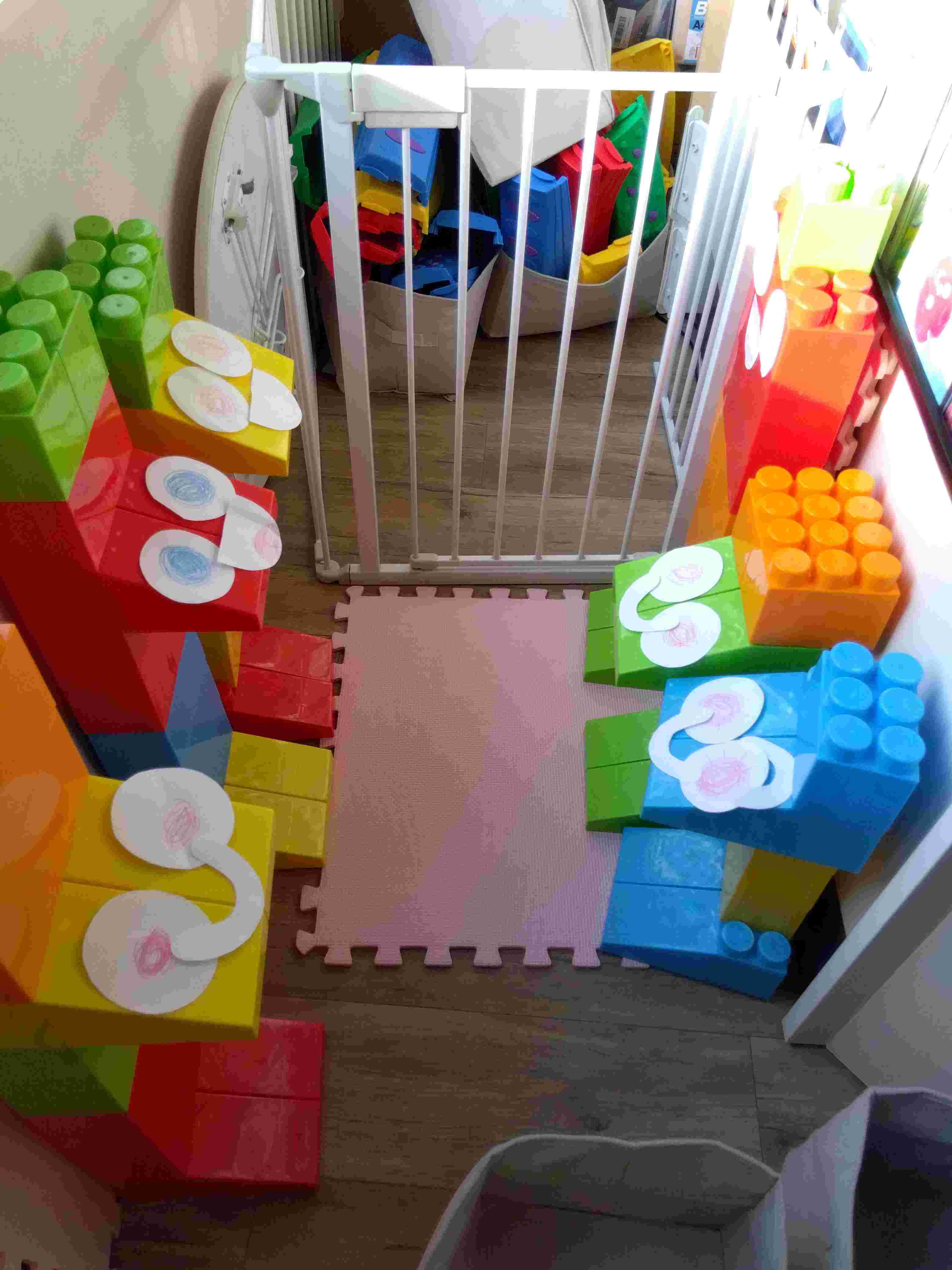 自由遊びの時間では、マスブロックを使ってお店を作って