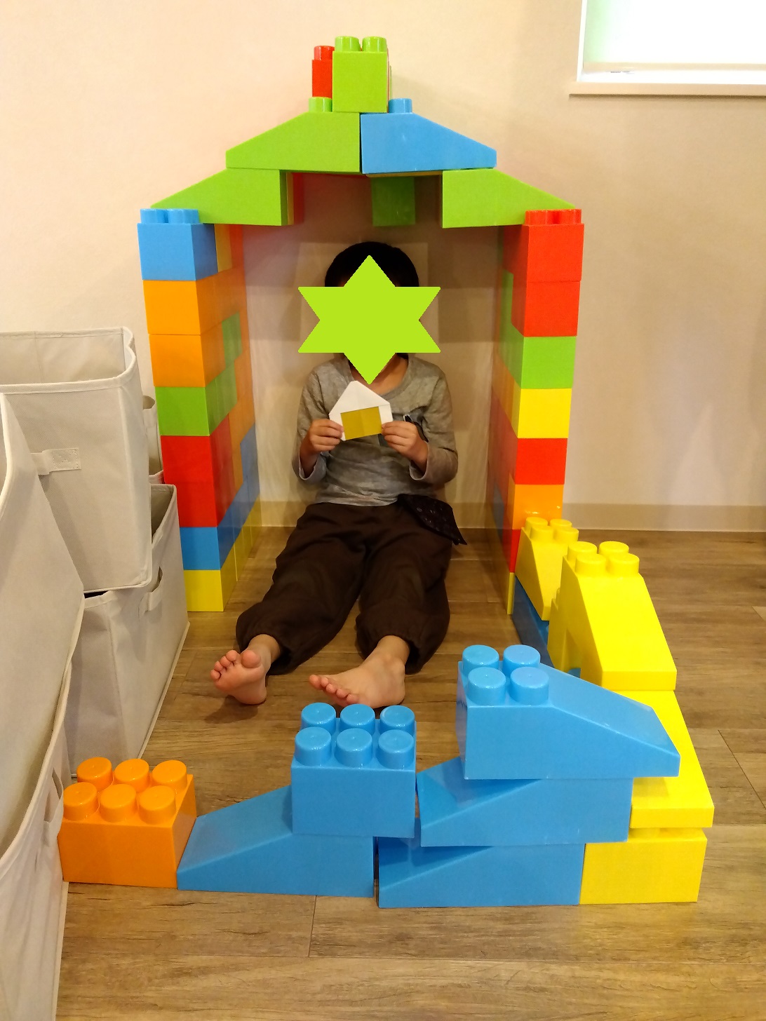お子さんが入れるサイズの「おうち」や「キリン」を作って遊んでいたお子さんでした!