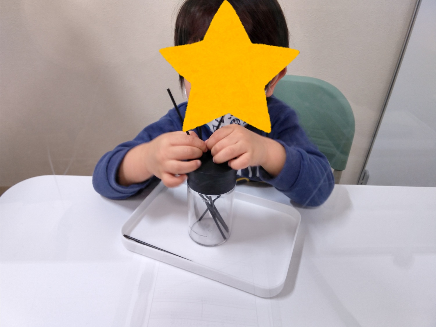 このお子さんが取り組んでいる課題は、よく「ペグ差し」と呼ばれる課題です。