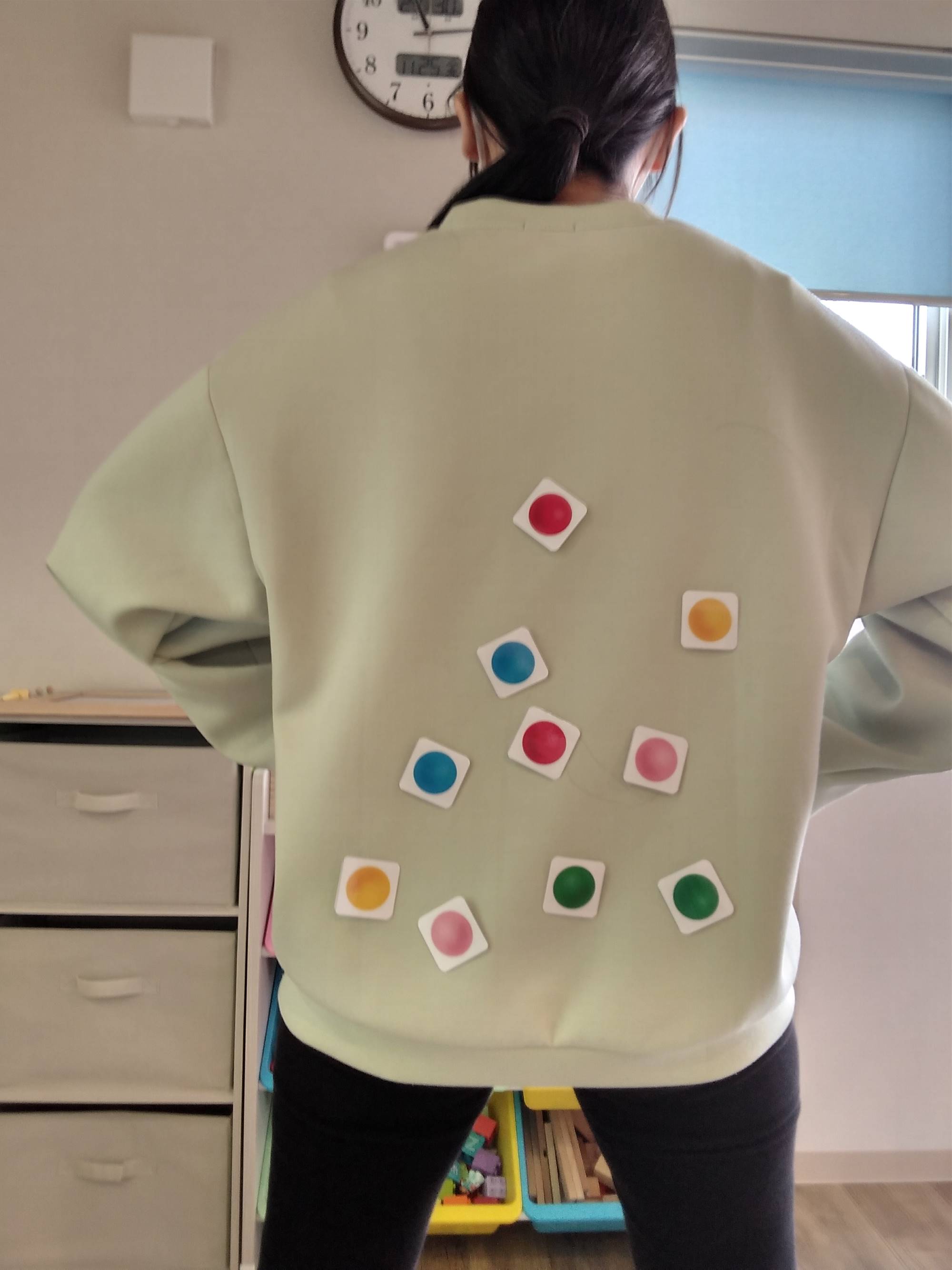 お子さんは鬼の背中に貼ってあるカラフルなシールを鬼に見られないように取りに行きます。