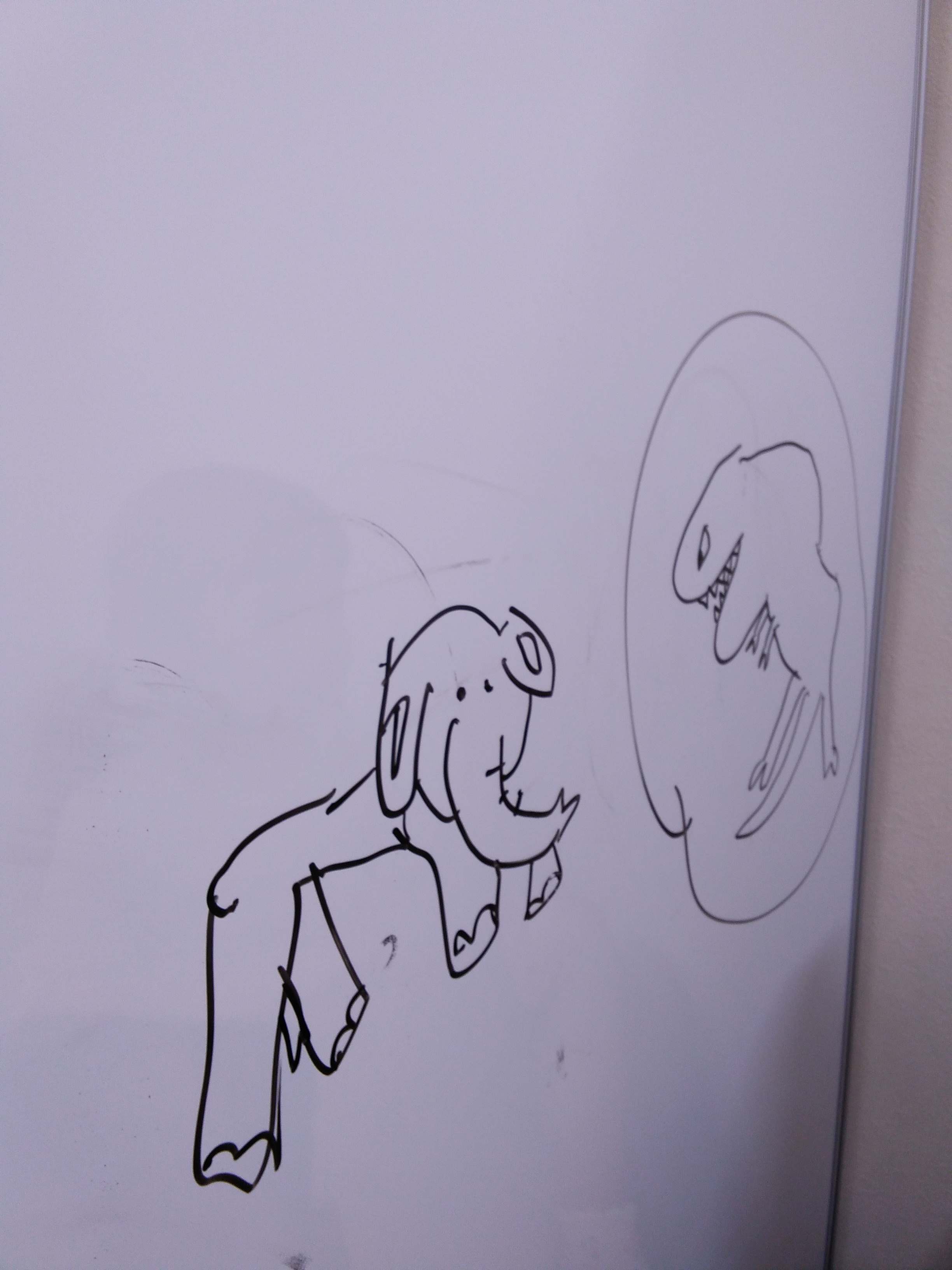 今回は絵を描いていますが、このホワイトボードで大きく体を動かして、【運動覚】から書字に必要な練習を行うことができます。また、ホワイトボードマーカーを使用して書くため、筆圧が弱いお子さんでも一定の濃さで書けたり、「キュキュッ」という音による【聴覚フィードバック】で、文字の形を覚えることもできますね。