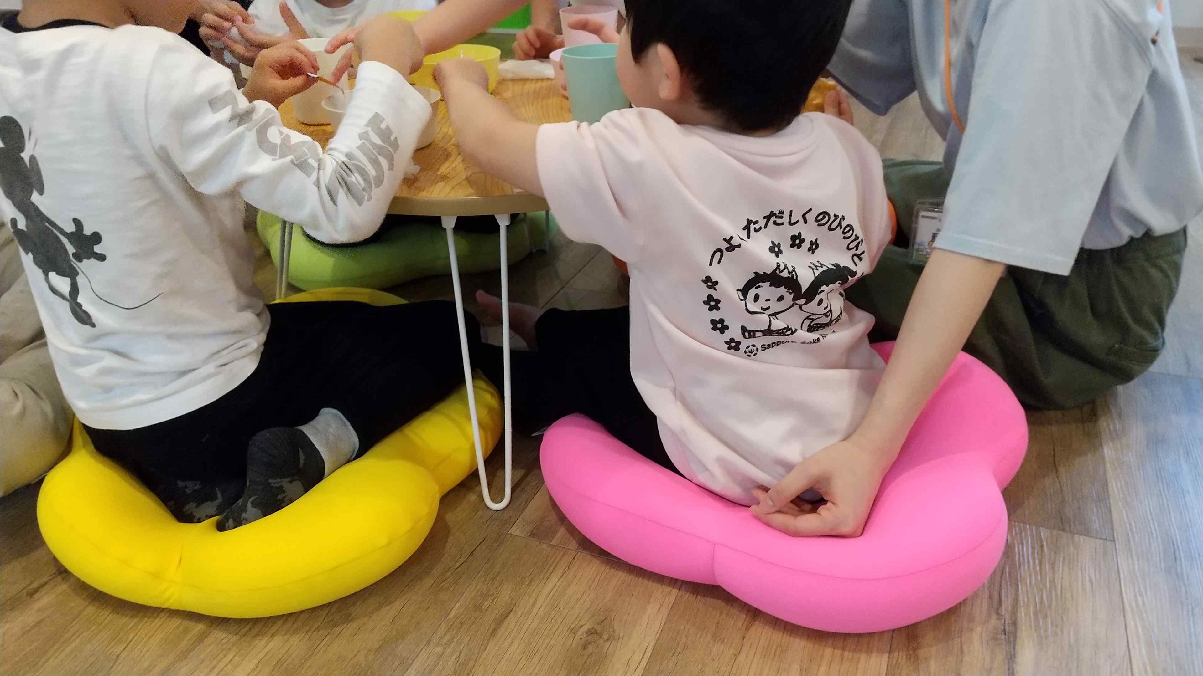 スマイルでは椅子ではなくお花の形をした可愛いクッションに座っています。