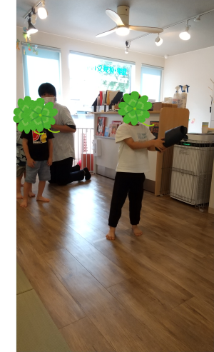 スマイルのお子さん達はスリッパをえい!と振りボールに当てていました!