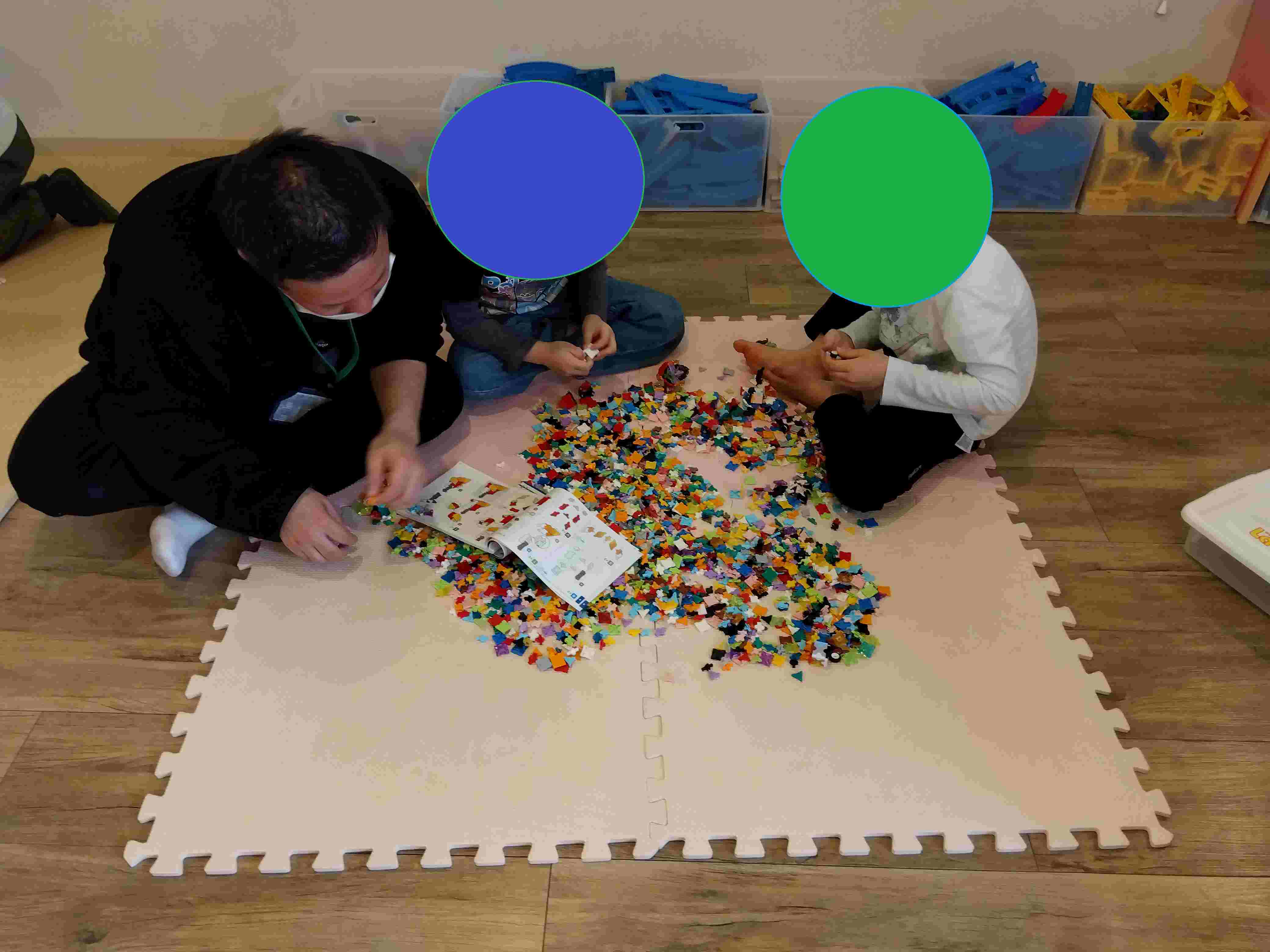 ブロック玩具であるLaQを一面に広げて