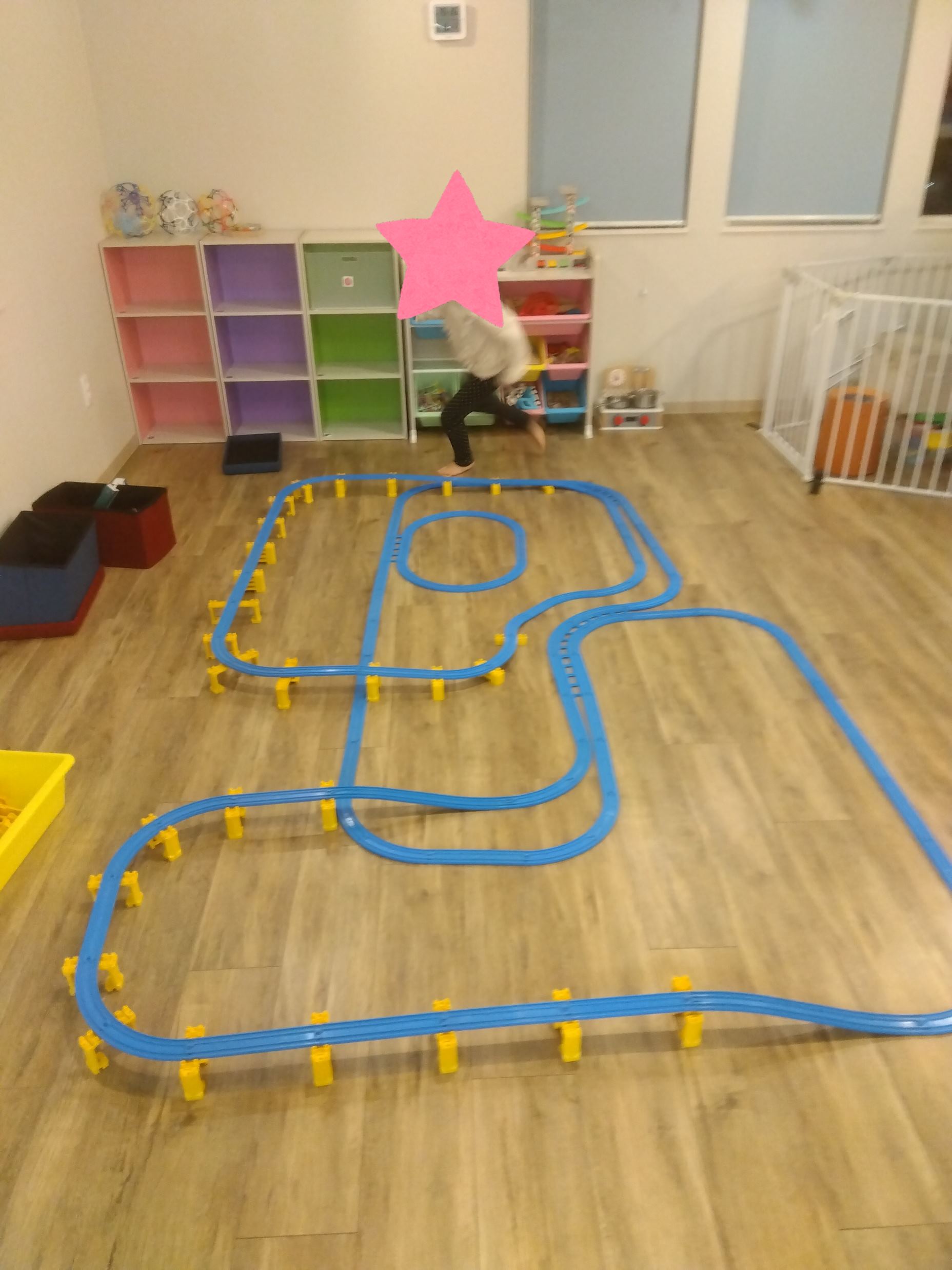 小学生のお子さんたちだけで自由に遊ぶ時間は30分程(お勉強の時間も含めると、さらに短くなることもしばしば…)になりますが、その時間でこれだけのプラレールを完成させていました!