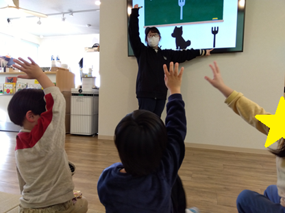 こちらの活動では、イラストが一つでてきて、3つのシルエットからどれが同じイラストなのか当てる活動となっております!