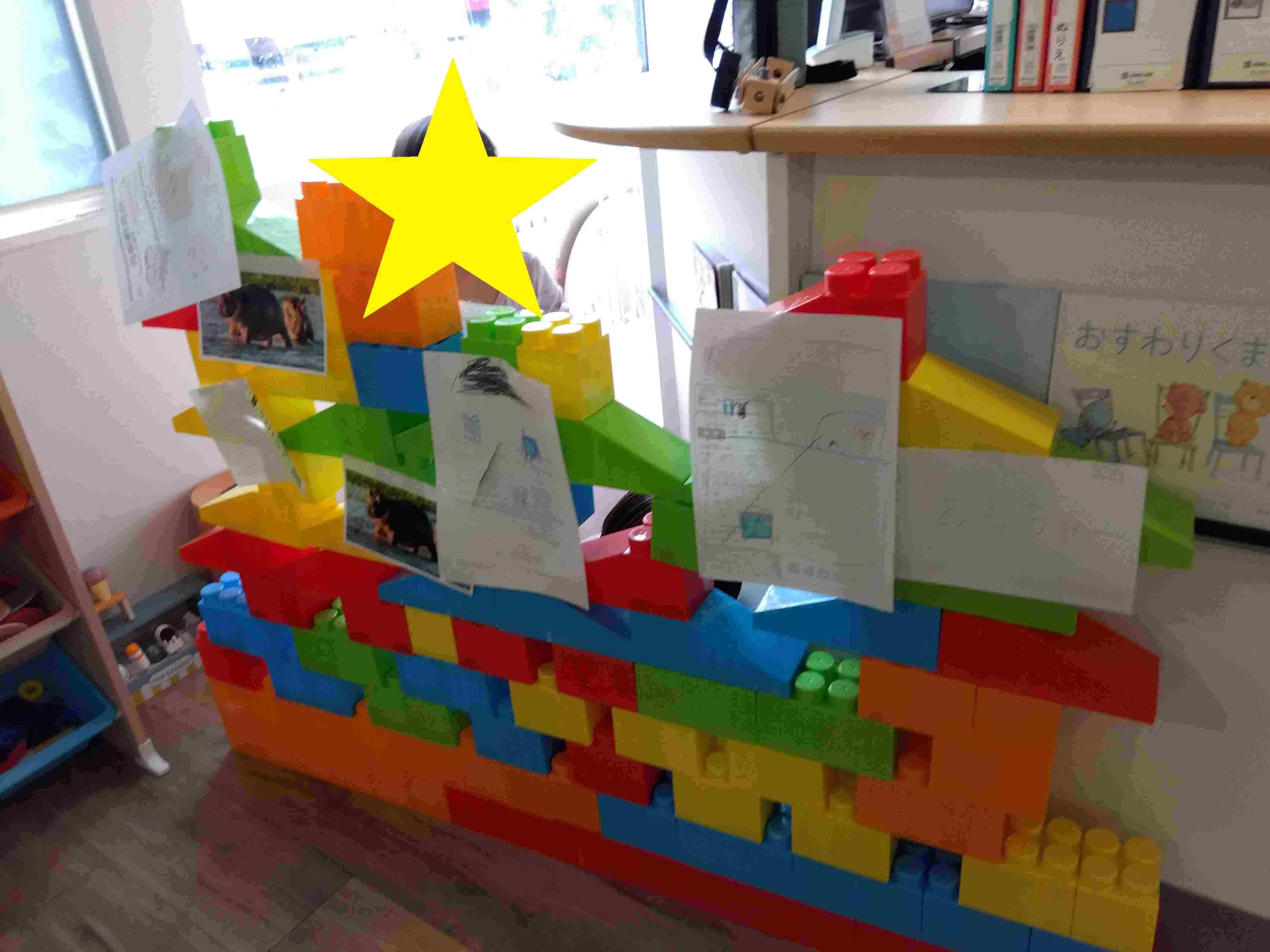 自由遊びの時間では、マスブロックを使ってお店を作って