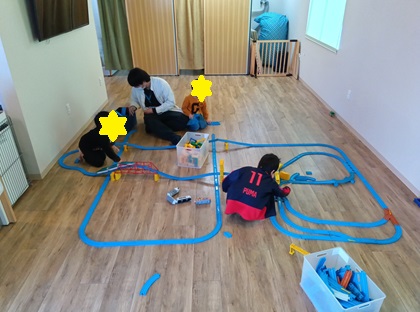 また、線路の組み立てだけではなく、ポイントを切り替えて列車同士がぶつからないように走らせたりと、たくさん工夫しながら遊んでいるお子さんたちでした!