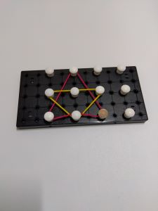 色の付いたゴムでチューリップや星など様々な図形を作ることが出来ます。