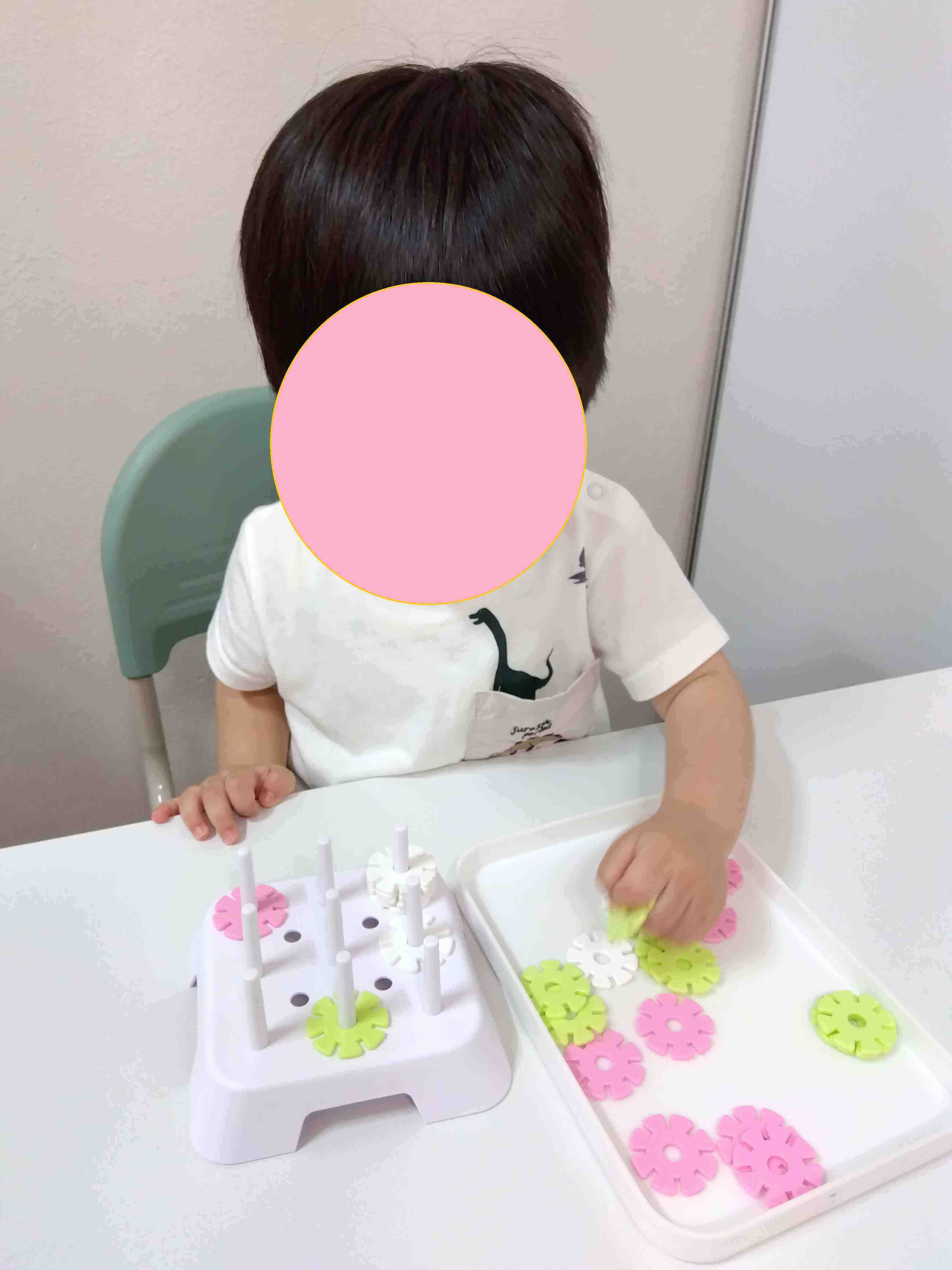 こちらのお子さんが使っているのは「ジスター」というお花の形をした知育玩具です🌸
