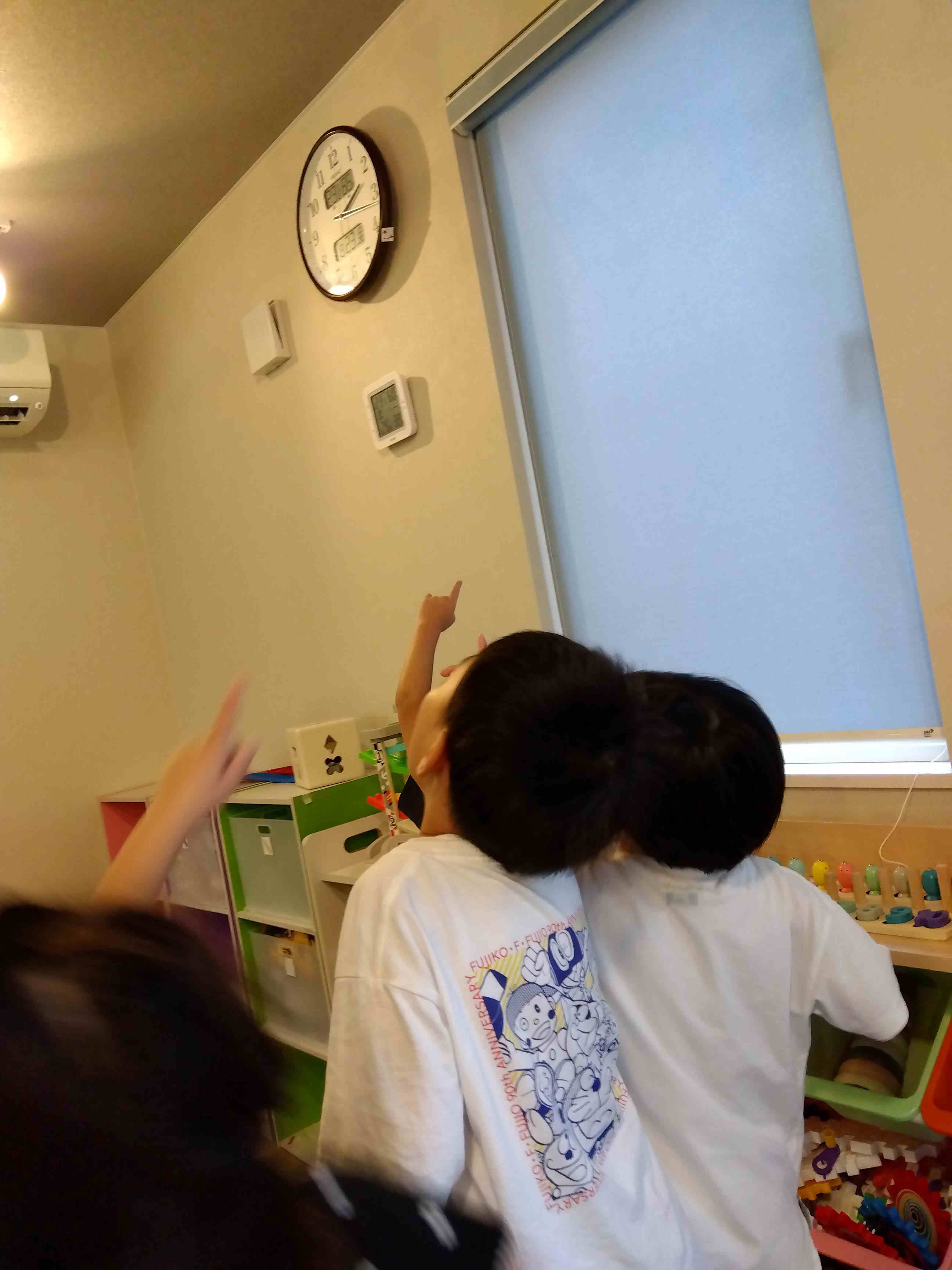 ストーリーはver.1同様、3匹の子猫ちゃんが迷子になってしまったママ猫を助けるというもの。ルールも変わらず、室内にカードとして隠されている3匹の子猫ちゃんを探すのですが、実施する日によって答えの場所を変えたのが今週でした。ここで必要になるのが【思考の柔軟性】。お子さんたちは「前と同じ問題だ!」と思って取り組み始めますが、実際にヒントの写真がモニターに表示されると問題が変わっていることに気付き、すぐにそのイレギュラーに対応する力を求められます。日常って、そういう小さなイレギュラーはとても多いですよね。例えば「いつも置いていた場所に物がない」とか「いつも使ってた靴箱に他の人が靴を置いている」とか。