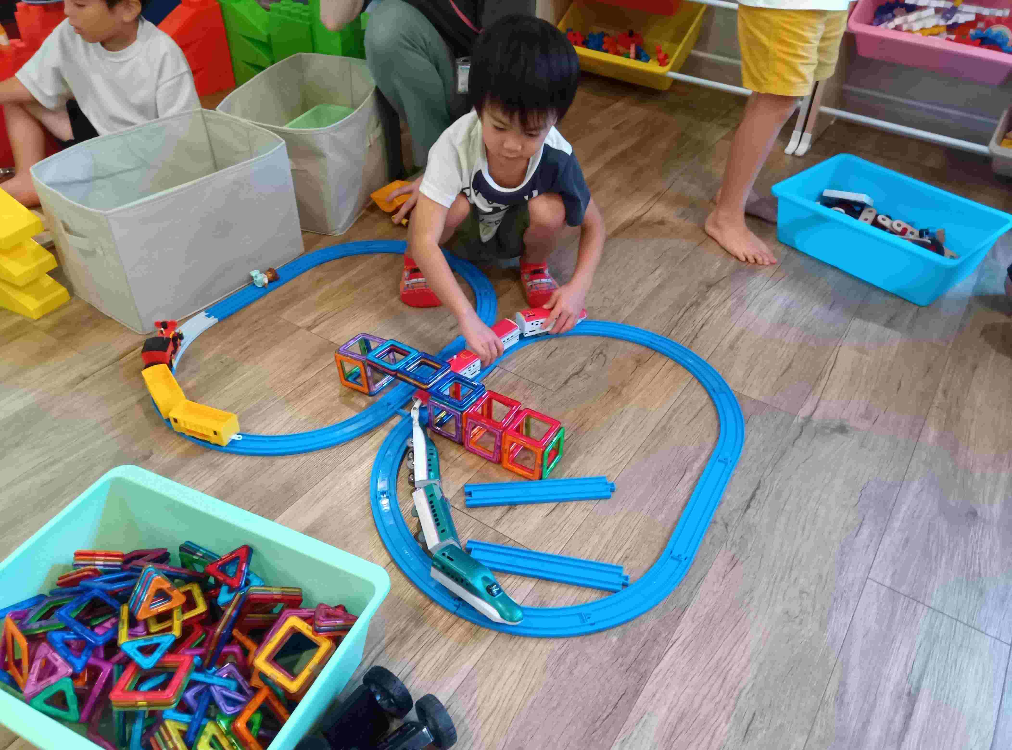 自由遊びの様子~プラレールとマグフォーマー~