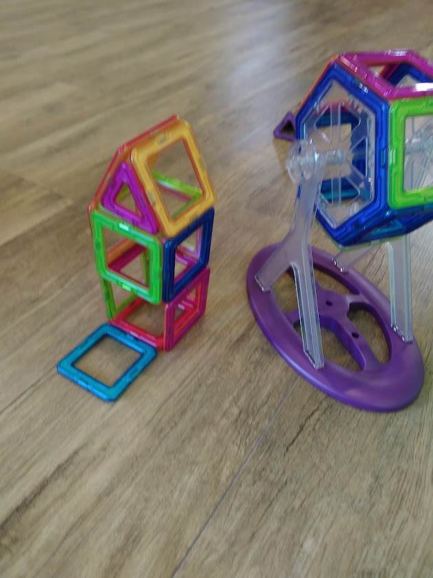 今日はマグフォーマーを紹介します。形の辺の部分がマグネットになっているので、写真のようなカラフルなお家などが作れます。どんなものが作れるかの見本を見ながら自分が遊んでみたいものを見つけ、お子さんだけで作る場合もあれば職員と協力して作る場合があります。そのお子さんによって建物などを作るお子さんや、自動車など作って実際に動かして遊ぶお子さんがいます。毎日すごく楽しそうです💕
