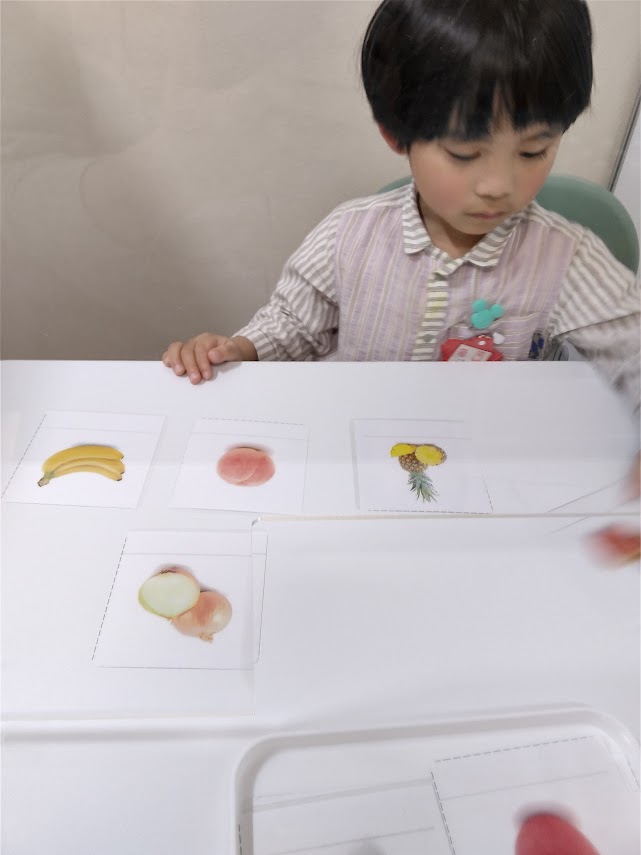 写真のお子さんはお買い物ごっこのように取り組みました。