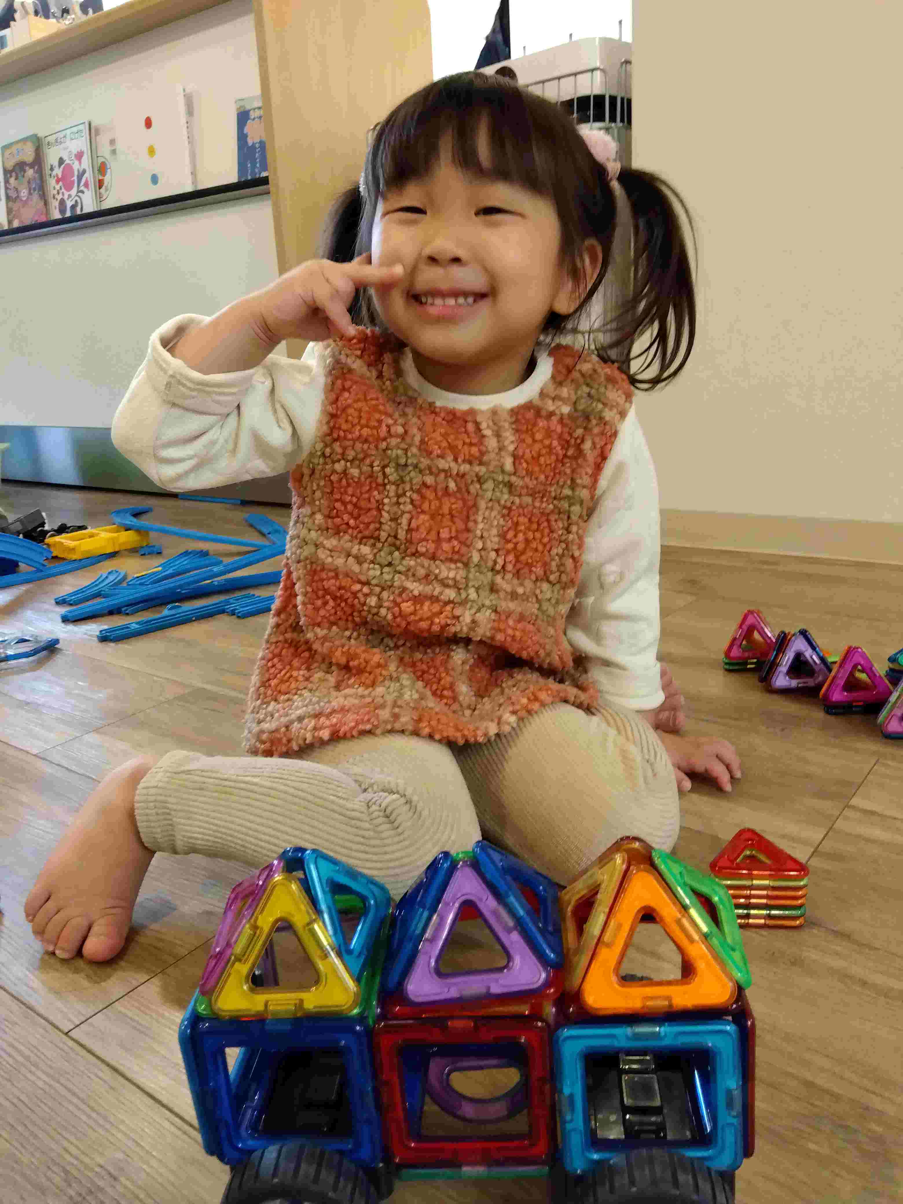 さて、本日は自由活動中に「マグフォーマー」で遊んでいる様子をご紹介します。