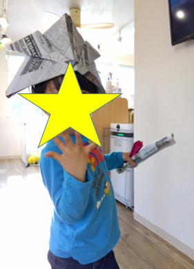 本日は少し早いですが5月5日にちなんで新聞紙でかぶとを作りました!