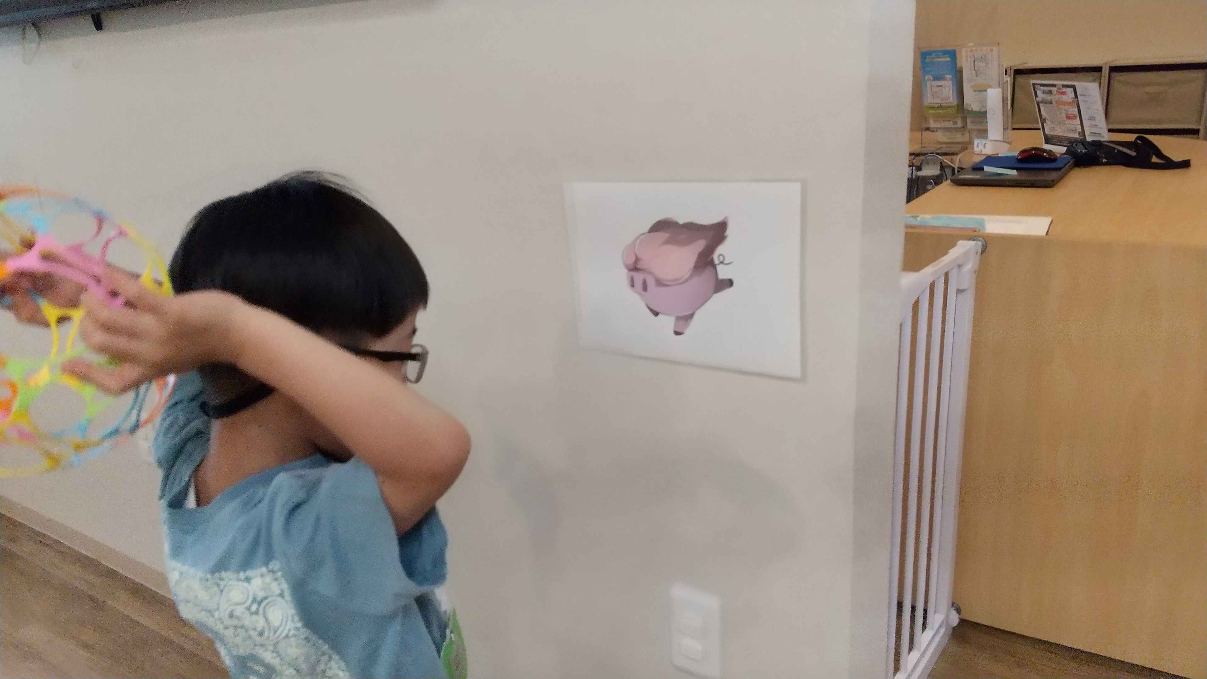 “モニターに映ったピグモン(モンスター)と同じピグモンを探してにボールを当てる”という課題です。