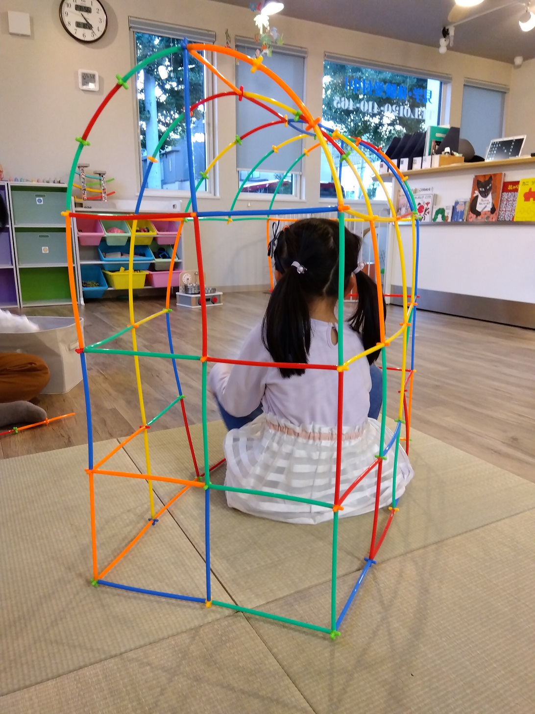 こちらは、『小さな突起のついたパーツ』と『少し硬いストローのようなパーツ』を組み合わせて好きな形を作ることが出来るおもちゃです。