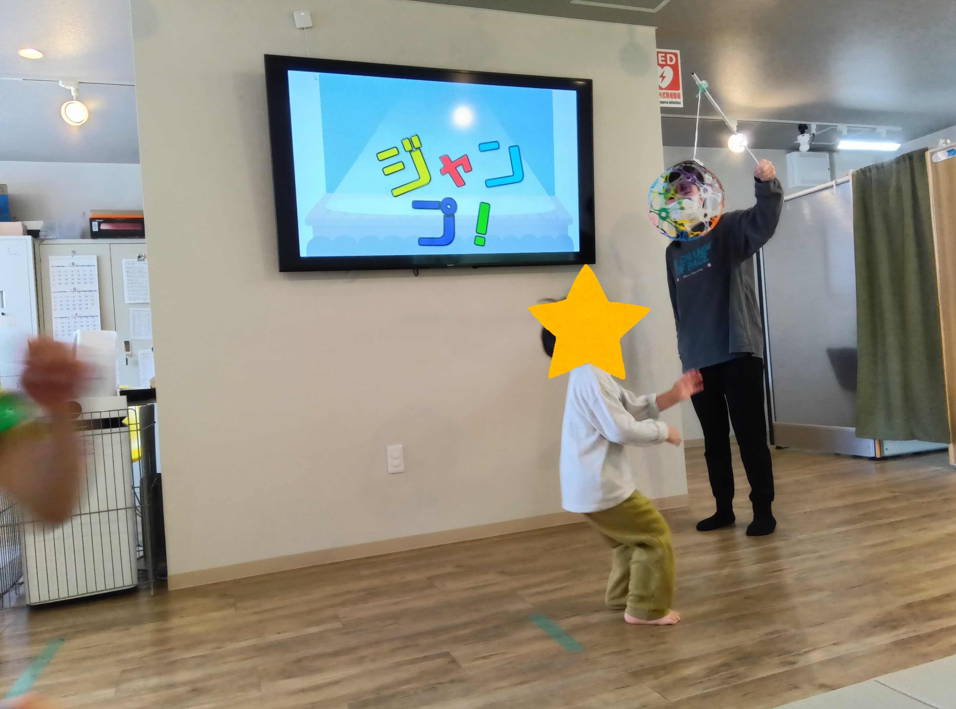 子どもたちにはボールをくす玉に見た立てて、ジャンプしてボールにタッチする課題に取り組んでいます!