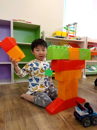 どんな形にするか『想像』して、時にはお友達と『協力』したり、ブロックが大きい分組み合わせる際に『力』が必要だったり…