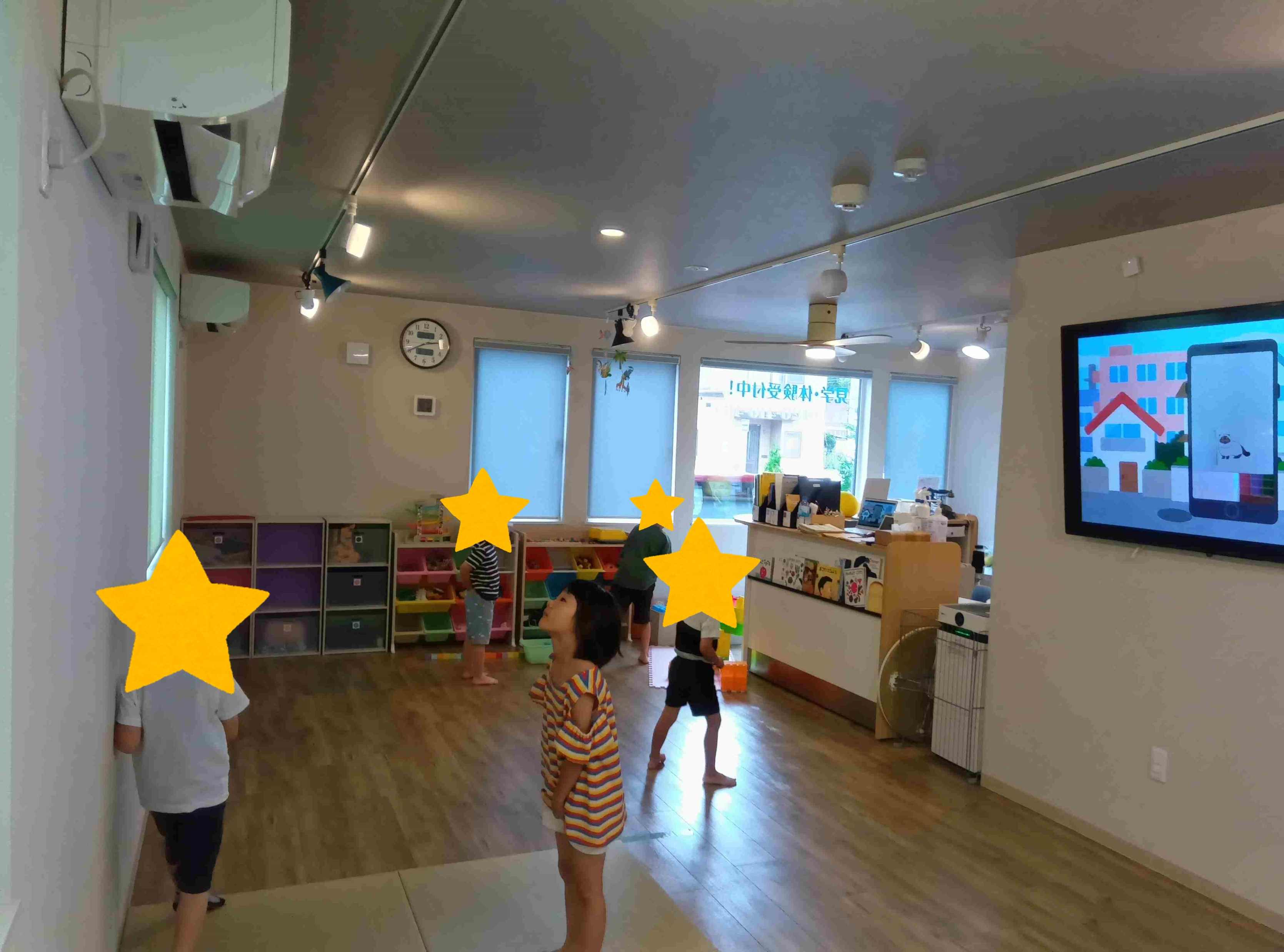室内にカードとして隠されている3匹の子猫ちゃん。モニターに映されるヒントの写真を見て、どこに隠れているかをみんなで探します。
