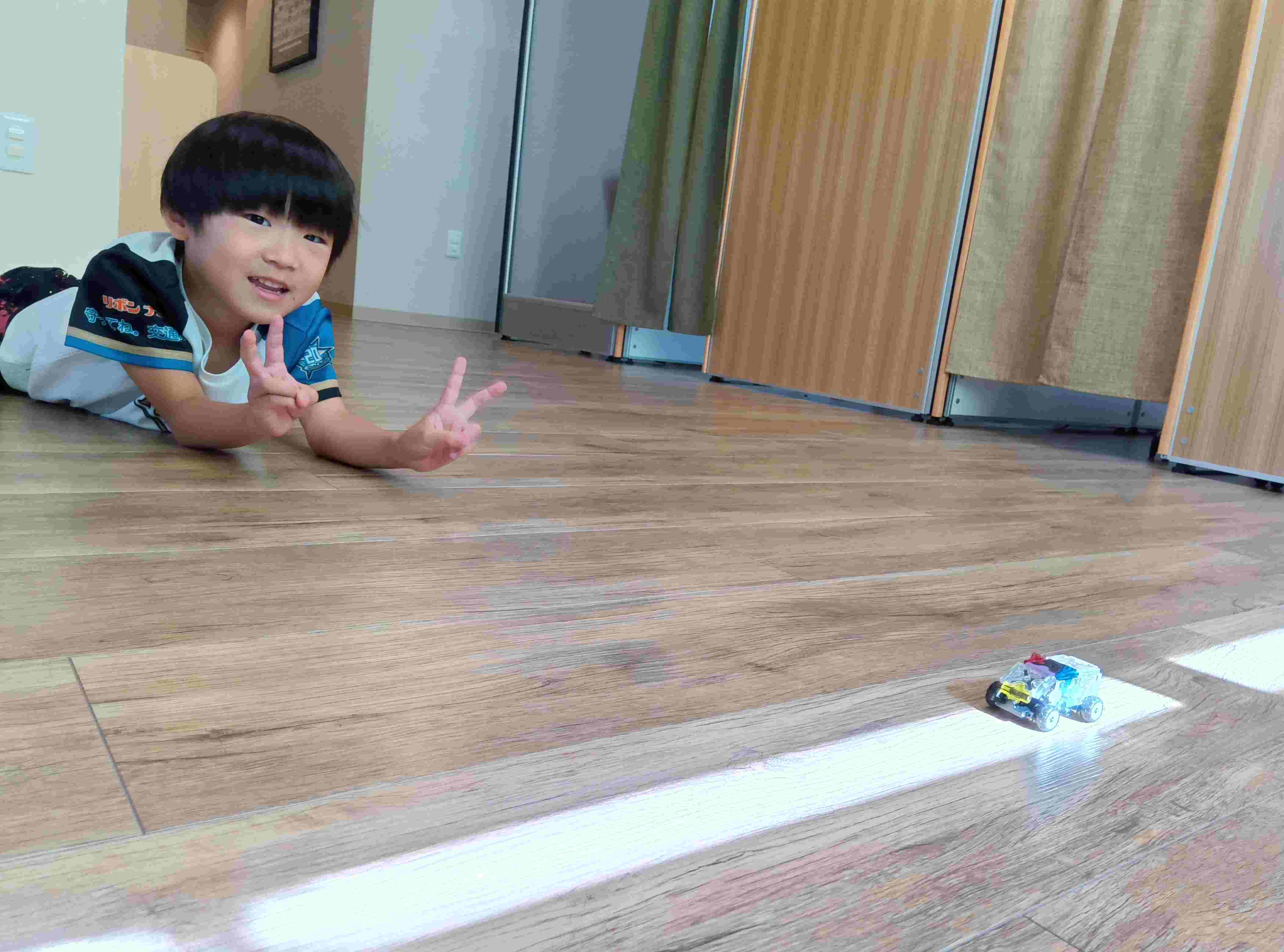 ブロックで作った車を走らせていました。