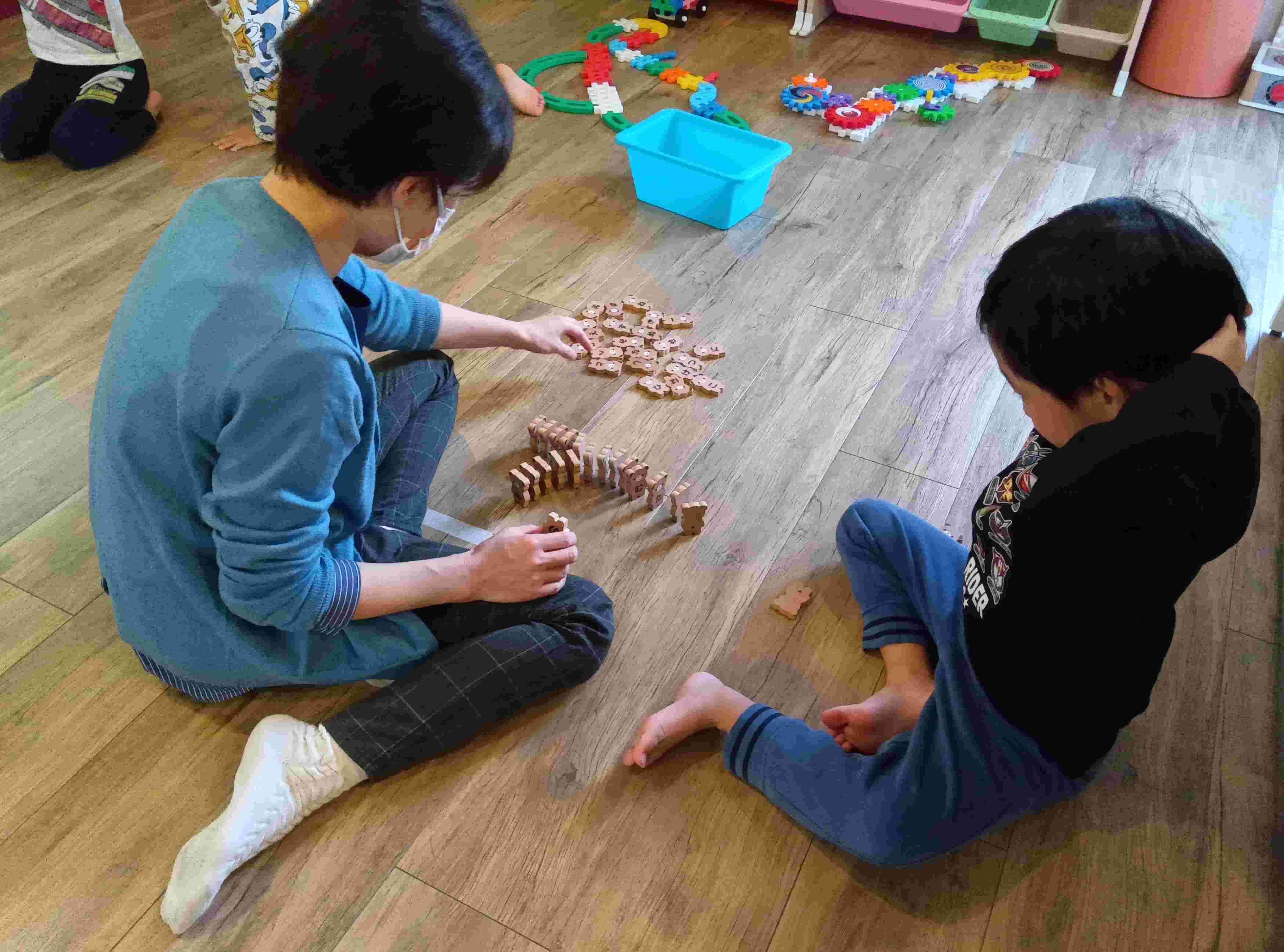 自由遊びの様子~クマのひらがなドミノ編~