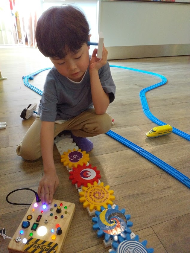 くるくる回るカラフルギアをまるでDJのようにして遊んでいます😊