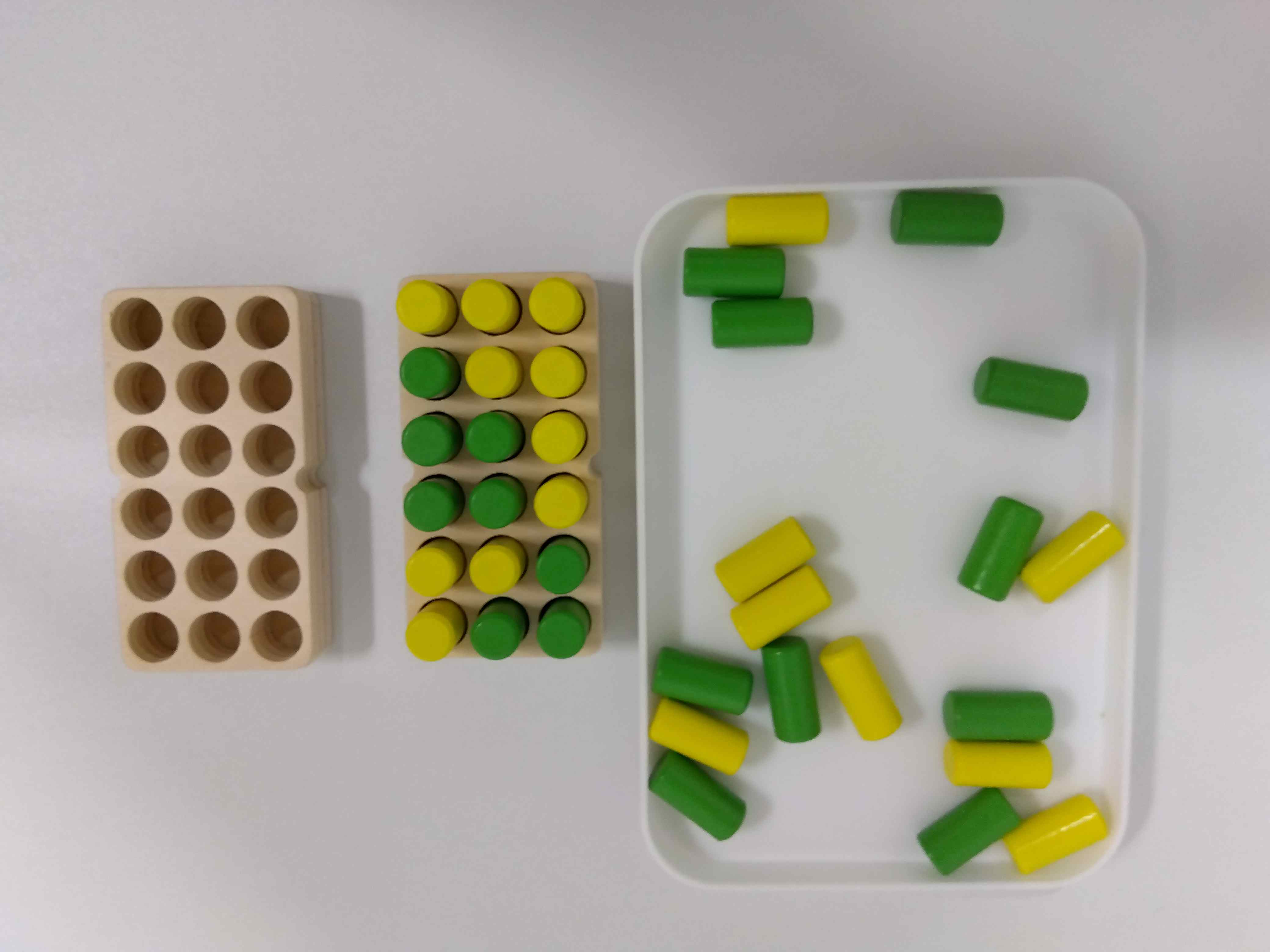 ペグ差しとは、色分けされたペグ(棒)を穴にさしていく教材です。