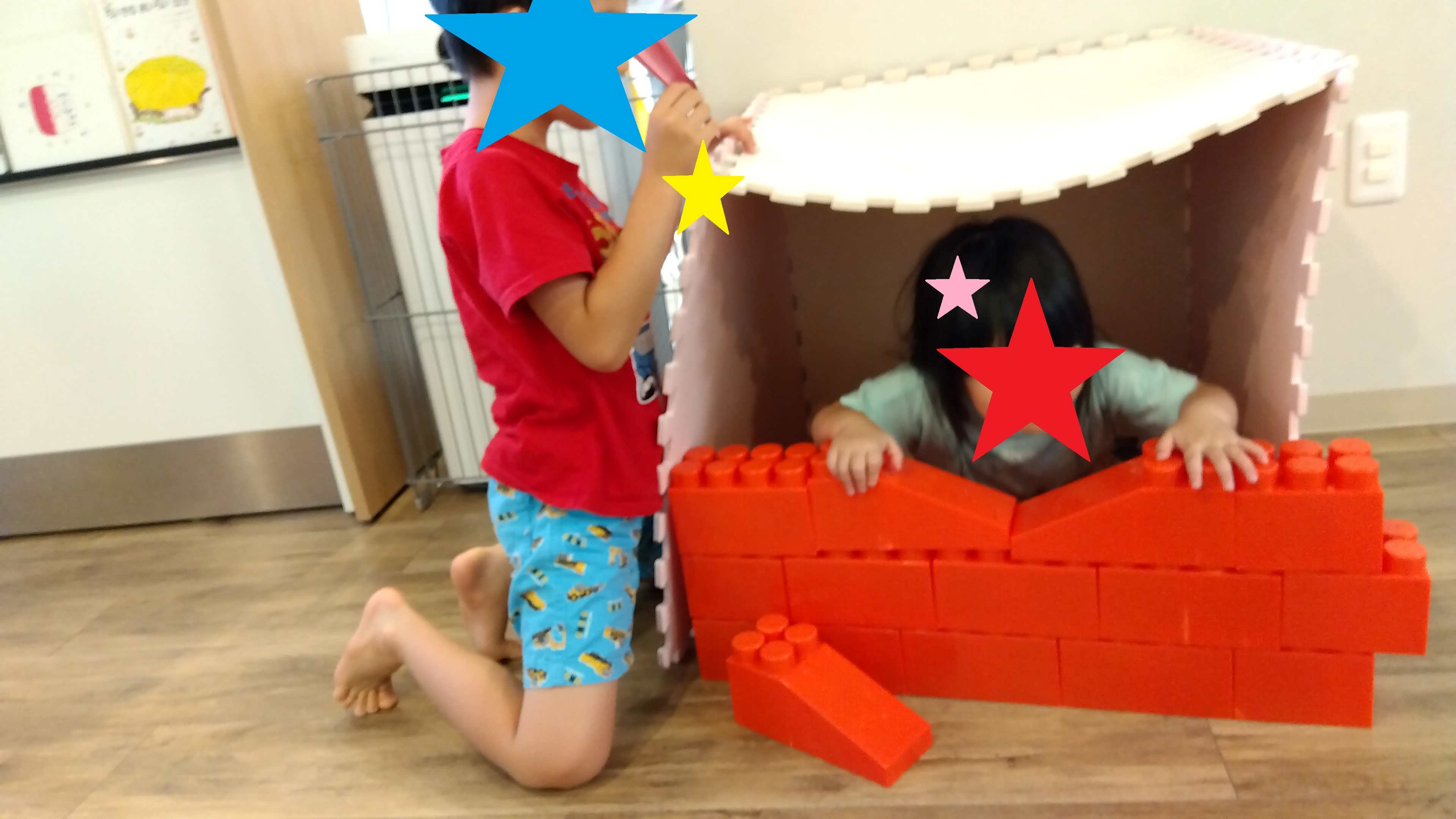 自由遊びの中で、ジョイントマットを使ってよく遊んでいるのですが今日はその中でも秘密基地を作って遊んでいる様子をお伝えします🎵