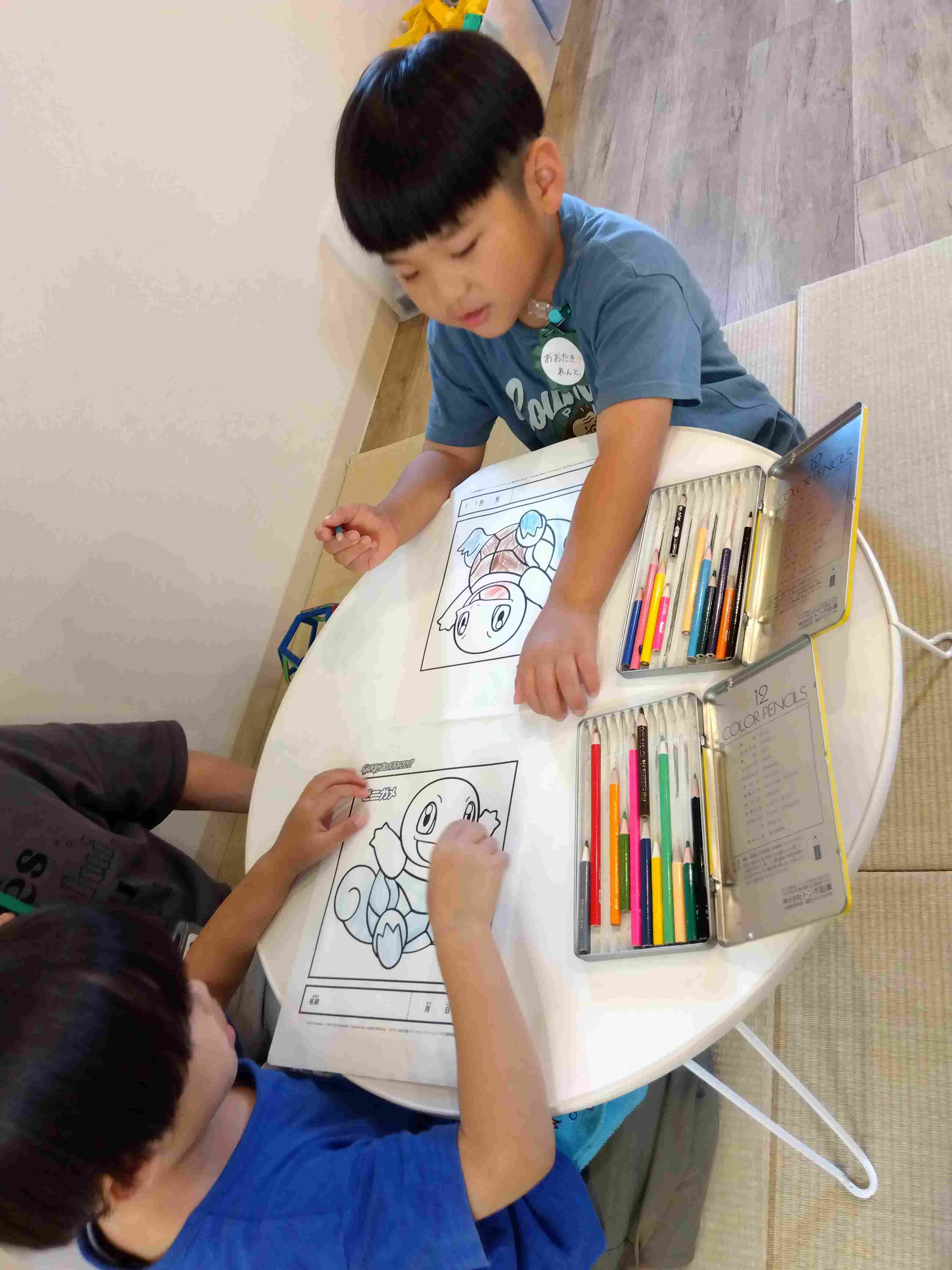 塗り絵を好むお子さんも多く、子どもたちから人気のポケモンや