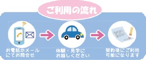 まずはお電話かメールにてお問合せをいただきました上で、見学・体験にお越しください。その後契約をした後にご利用となります。その時に受給者証のコピーもお預かりいたします。